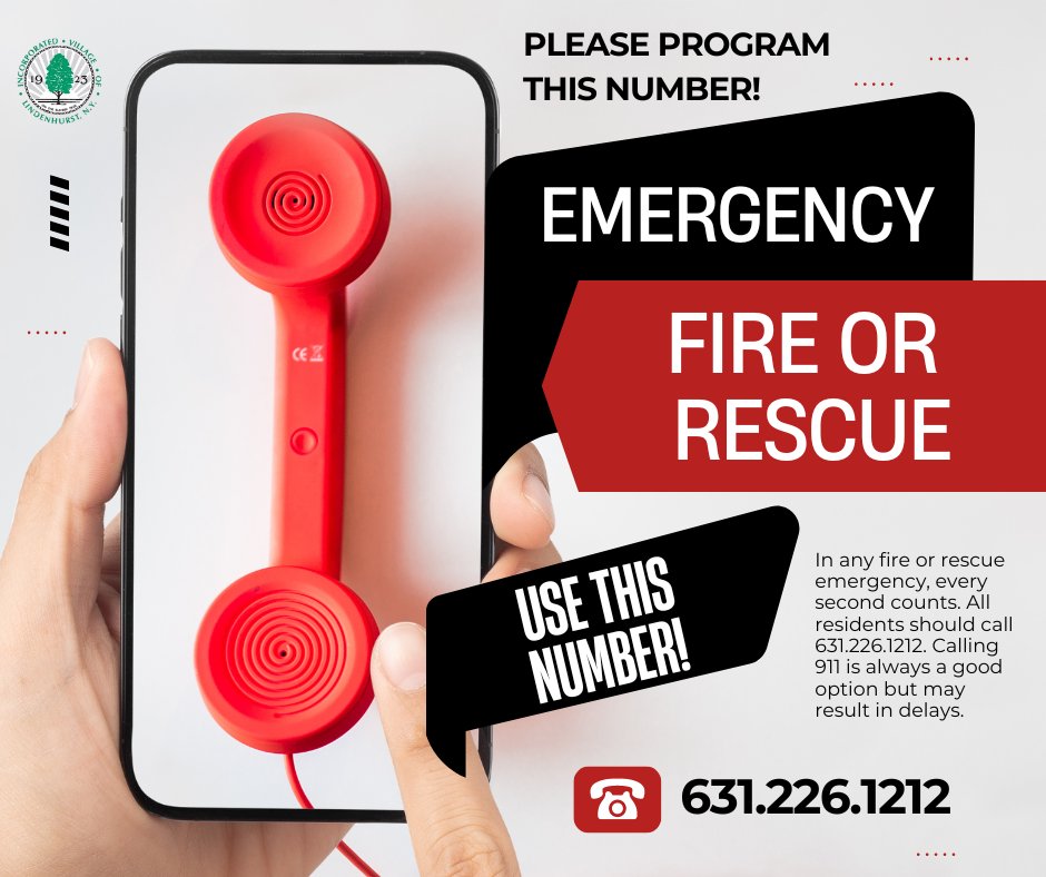 CALL 631-226-1212 FOR FIRE OR RESCUE EMERGENCIES