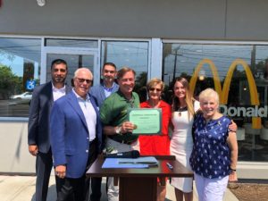Mayor Michael Lavorata is pictured here, along with Trustee Joan M. Masterson, presenting McDonald’s Owner and Operators, Liedtke Management, with a proclamation officially congratulating them on their re-opening, and acknowledging McDonald’s as a member of the Lindenhurst business community.