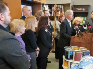 Village of Lindenhurst Deputy Mayor Maryann Weckerle and Trustee Joan Masterson along with local business leaders, small business owners, and Chamber of Commerce members from various towns and villages attended Suffolk County Executive Steve Bellone and Nassau County Executive Laura Curran’s press conference at Bak & Vogel paint store located on North Wellwood Avenue to urge the New York State Senate to adopt the Internet Fairness and Conformity Act in the 2018 -19 State Budget.
