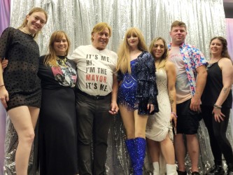 Pictured here (left to right) are: Alyssa Ragogna, Carolyn Ash, Mayor Michael Lavorata, Totally Taylor Tribute Artist Kelsey Elquist, Nicole Lavorata, Joe Conti, and Joci Lavorata