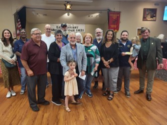 Pictured: Moose Lodge President Bridgett Ahlers, Mayor Michael Lavorata, Deputy Mayor RJ Renna, Phil and Renee Renna, along with members of the Renna Family and Officers of the Moose Lodge.