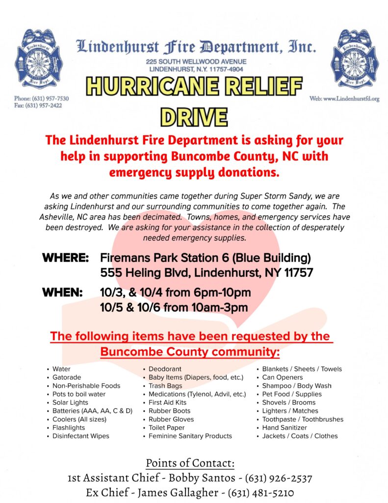 HURRICANE RELIEF DRIVE — BUNCOMBE COUNTY, NC